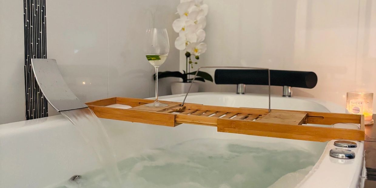 Private bathroom featuring a luxurious spa bath and walk-in shower